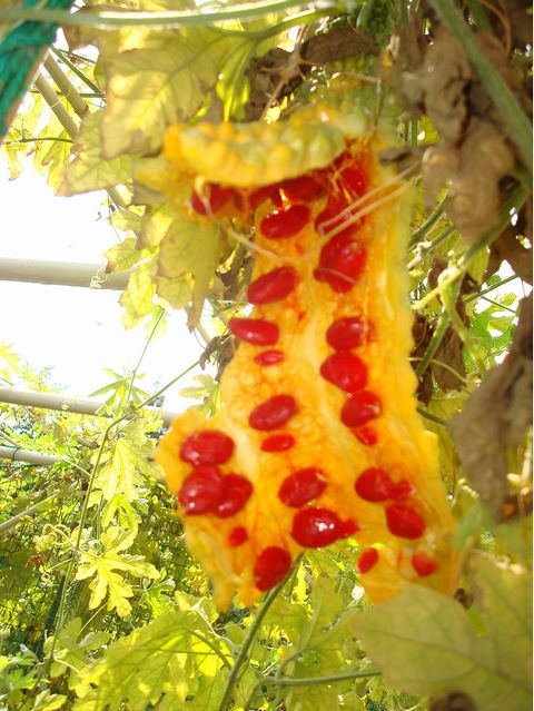 つるれいしの熟した姿に子ども達は釘付けでした。